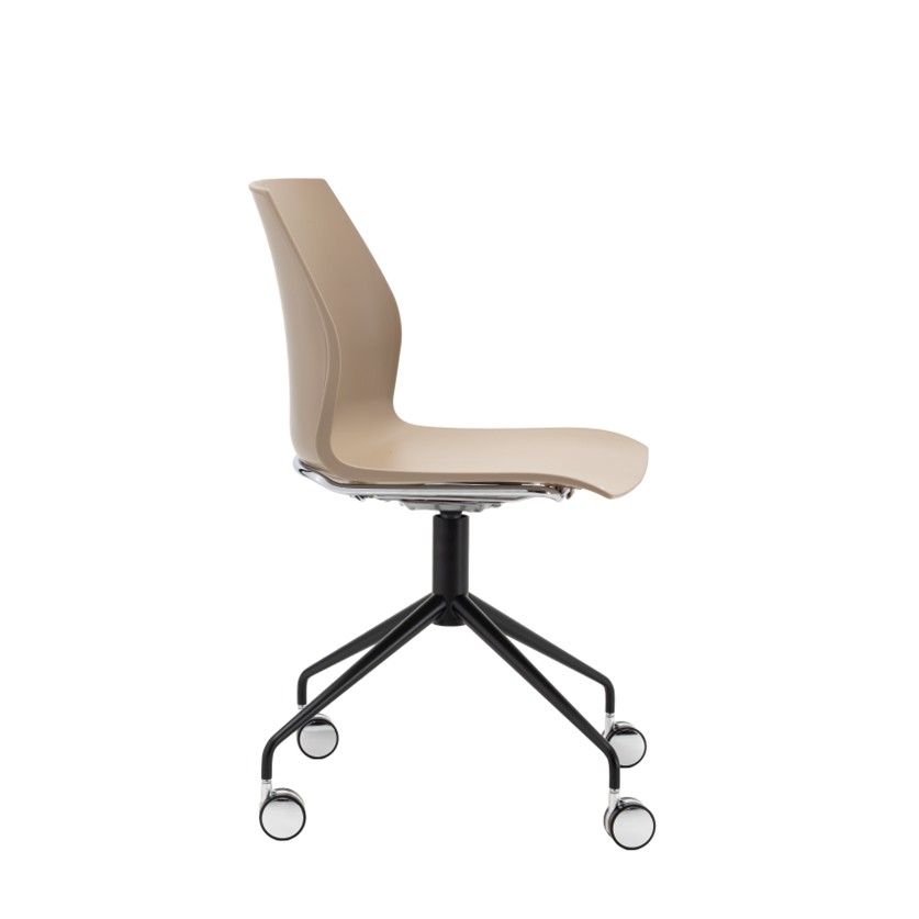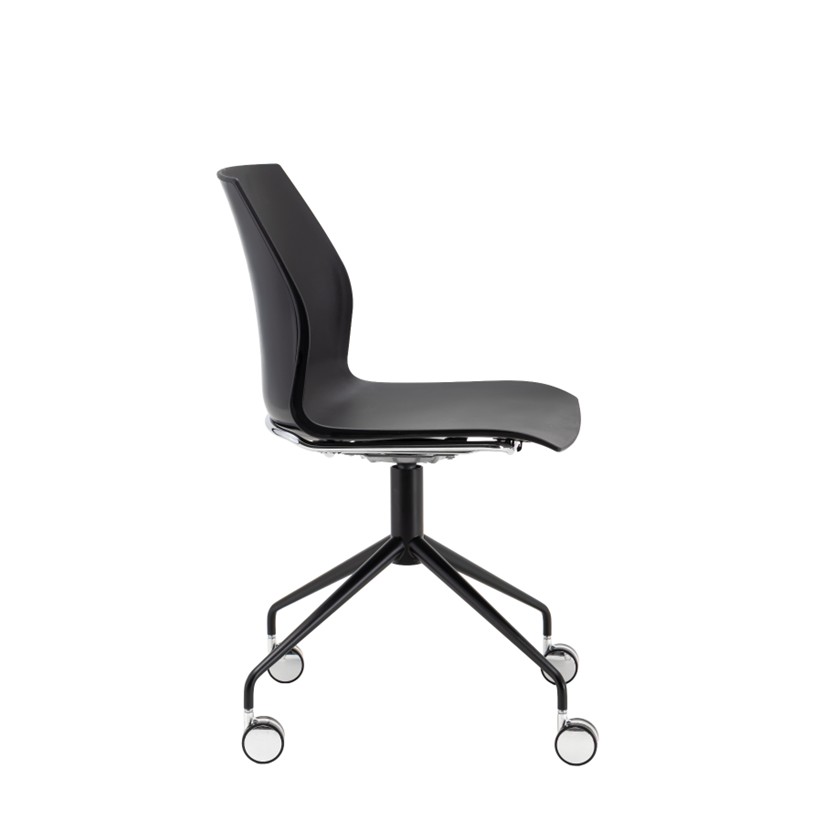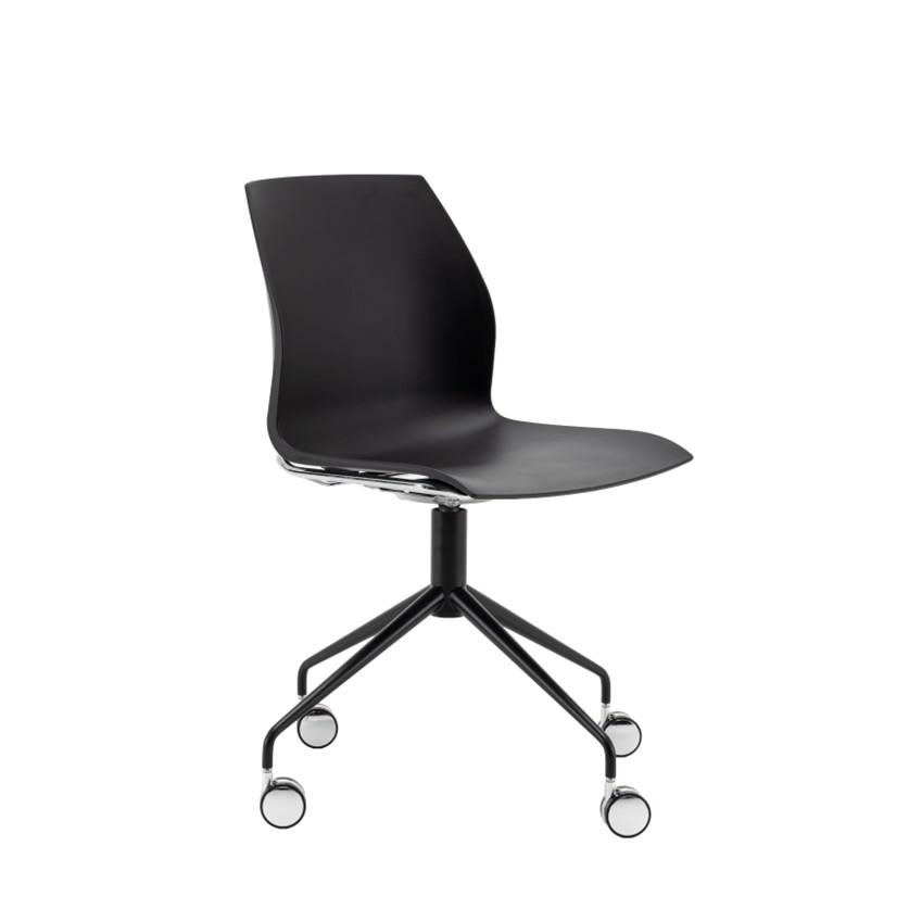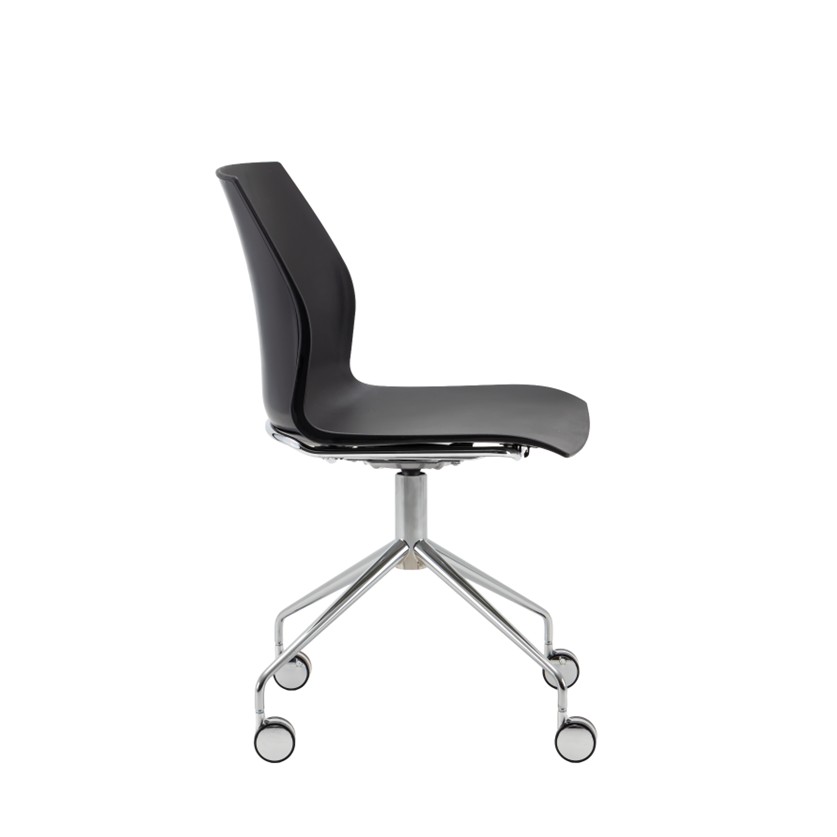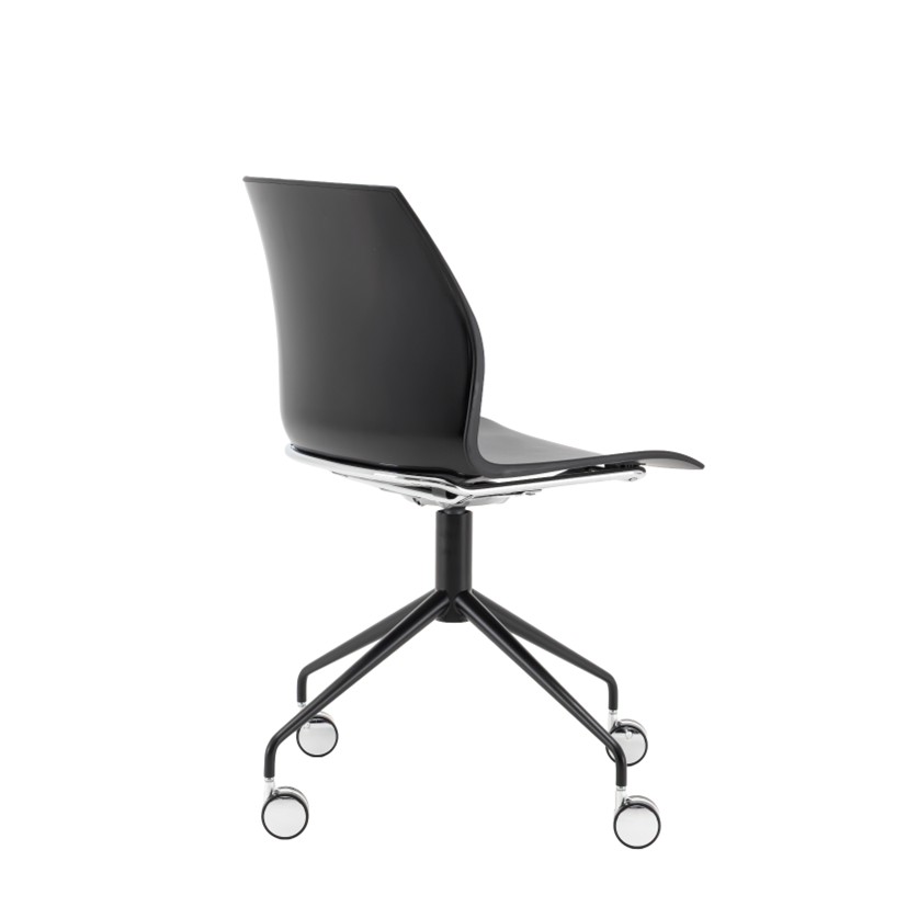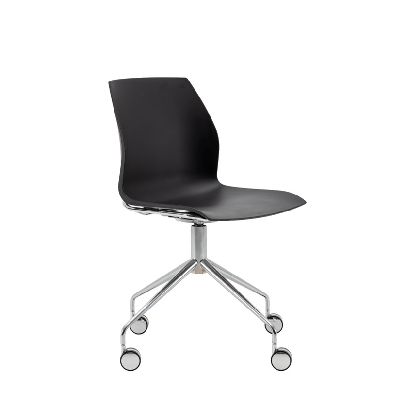 Swivel 4-star base in chrome or black painted finish on chrome castors