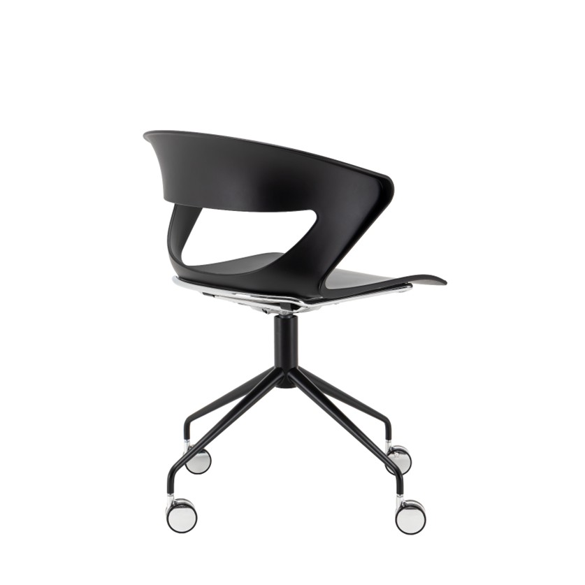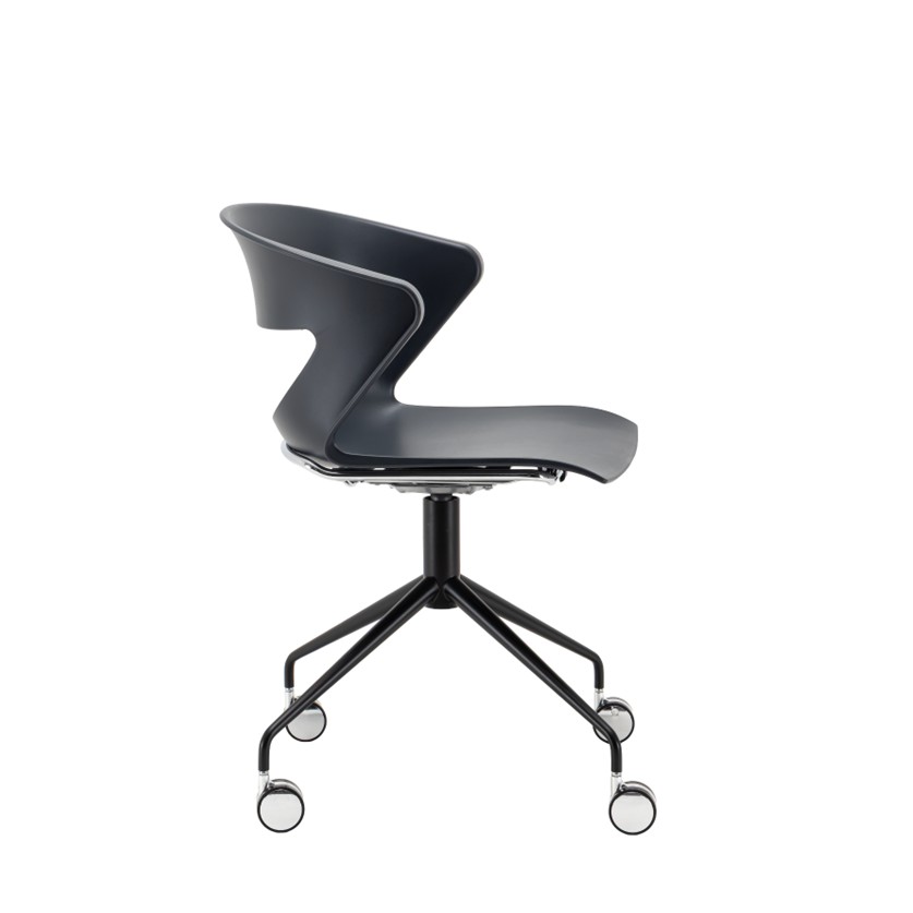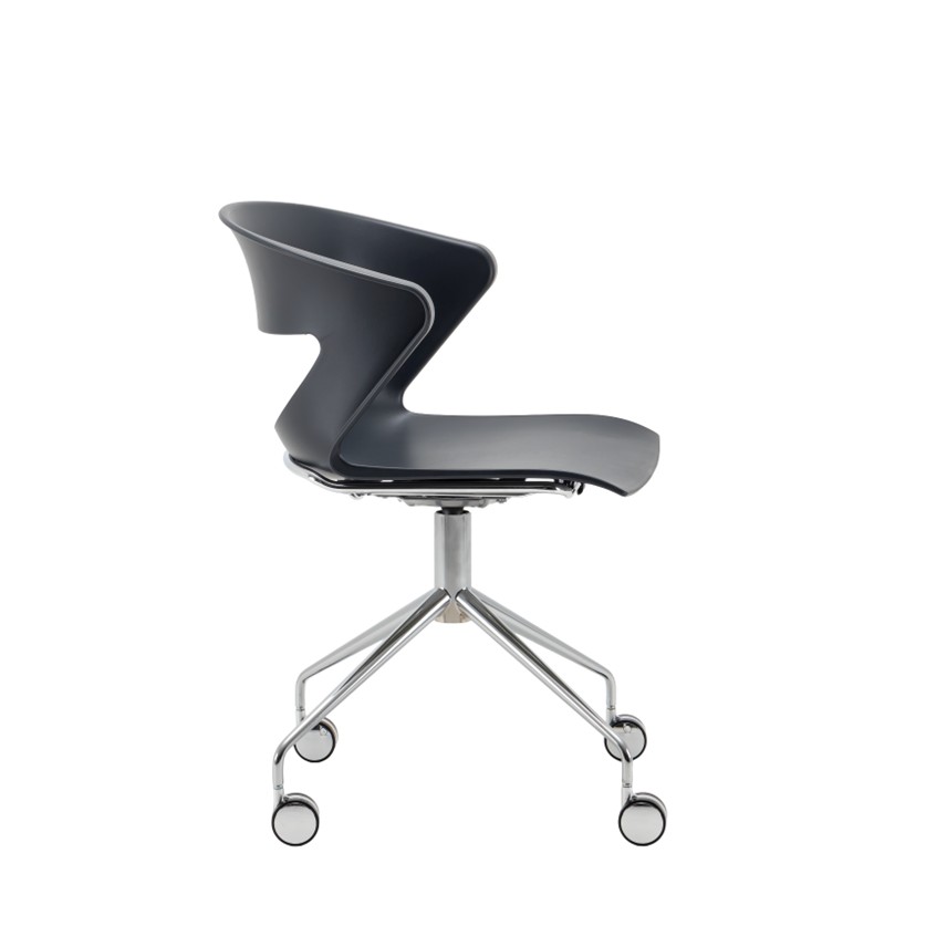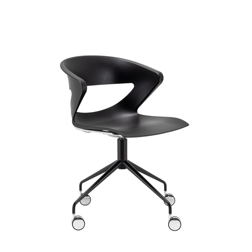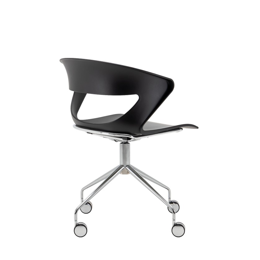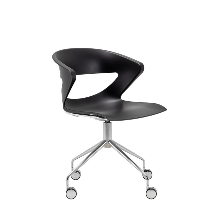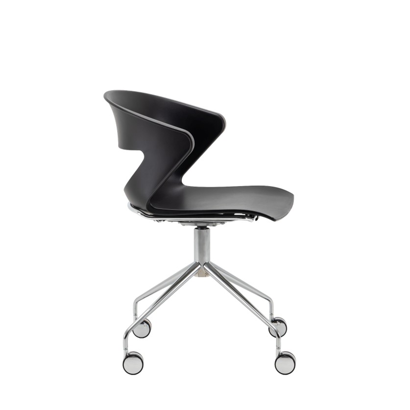 Swivel 4-star base in chrome or black painted finish with chrome castors